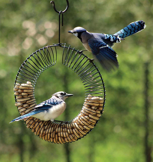 A simple, sturdy wreath-style feeder designed for offering whole peanuts to birds. Its circular metal frame lets birds cling comfortably while pulling out peanuts, and the open design keeps everything well-ventilated so the food stays fresh. Easy to fill, easy to hang, and great for attracting woodpeckers, nuthatches, jays, and other peanut-loving birds. Perfect for adding a bit of activity to your yard without any fuss.