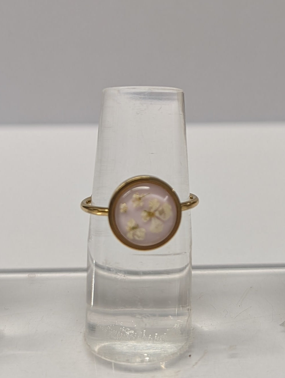 Adjustable Ring | Chervil on pink | Gold Toned Stainless Steel