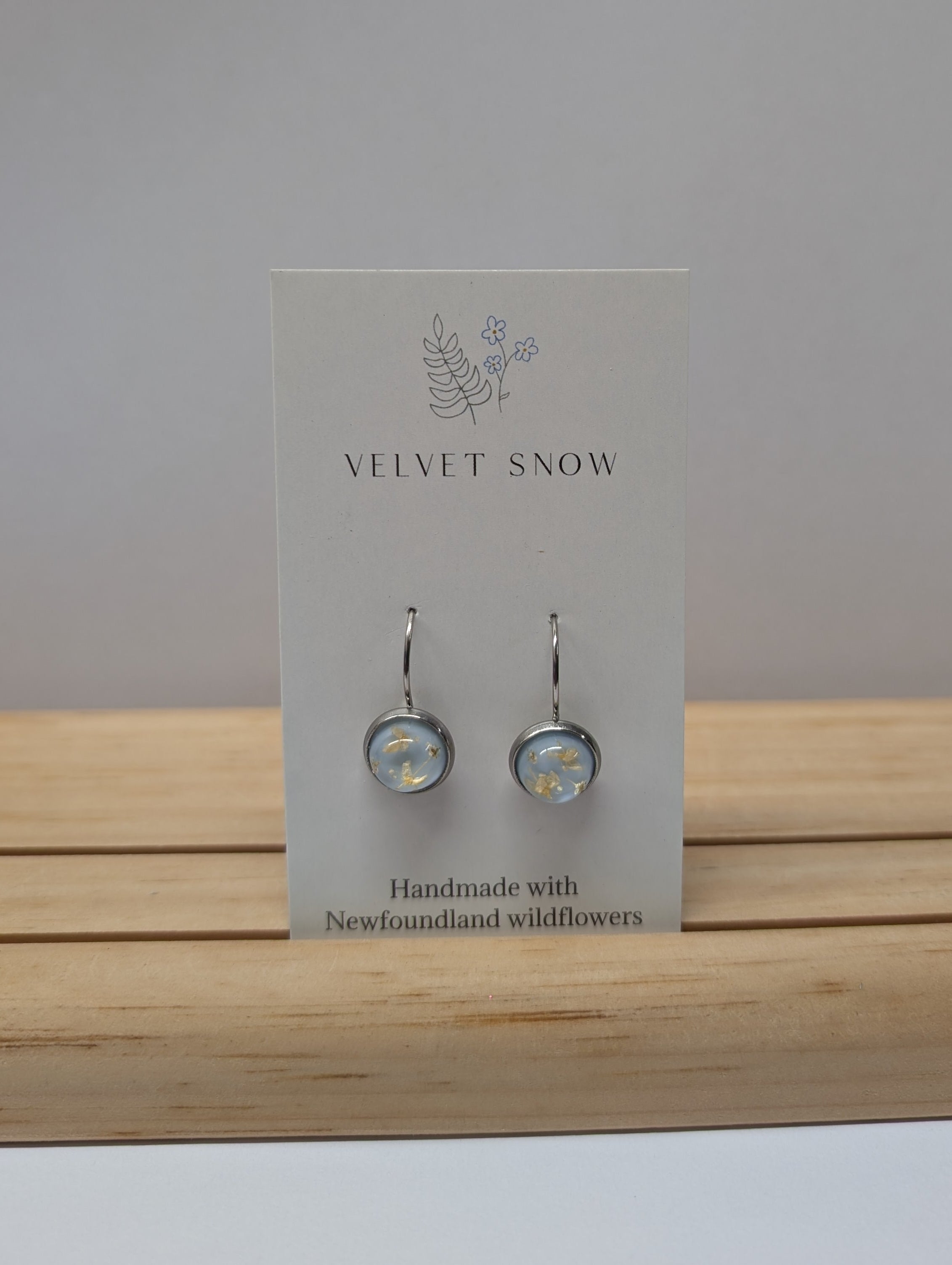 Velvet Snow Accessories is a handcrafted jewelry line based in Newfoundland, Canada. Designer Kim Cleary, born and raised in St. John’s, forages wild flowers and foliage within the province and turns them into beautiful, minimalistic accessories.