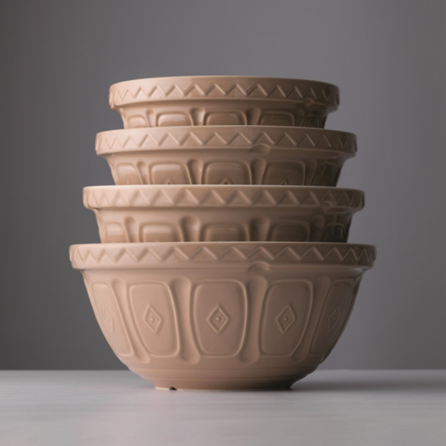The Original Cane Mixing Bowl has been in use since 1901 and is still practical for today’s kitchen, whether professional or in the home. The distinct patterned exterior and rim of the ceramic mixing bowl is designed to help bakers grip and tip the bowl.