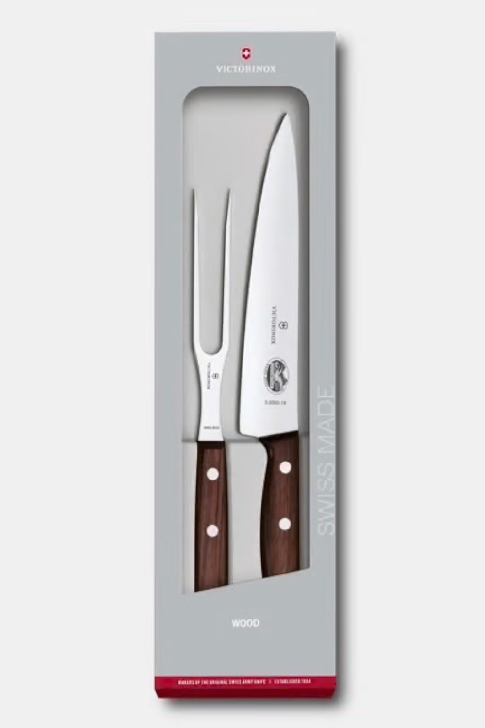 Victorinox Carving Set - Swiss Precision for Perfect Slices This professional-grade carving set features a sharp stainless steel knife and fork, designed for clean cuts through meat and poultry. Built with Swiss craftsmanship, it offers superior edge retention and comfortable handling. Perfect for holiday meals and everyday carving tasks, this durable set delivers reliable performance that lasts for years.