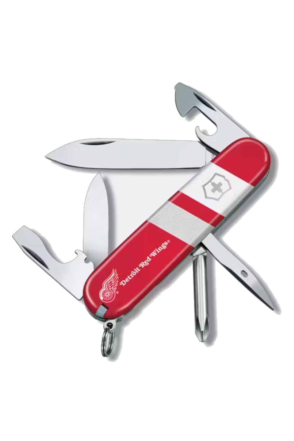 The Victorinox Detroit Red Wings Tinker combines iconic team spirit with legendary Swiss craftsmanship. This compact multi-tool features a blade, can opener, bottle opener, screwdriver, and awl—perfect for everyday tasks, camping, or showing your hockey pride. Built with Victorinox's trusted quality and durability, it's the ideal companion for fans who demand both functionality and fandom. Carry your passion wherever you go.
