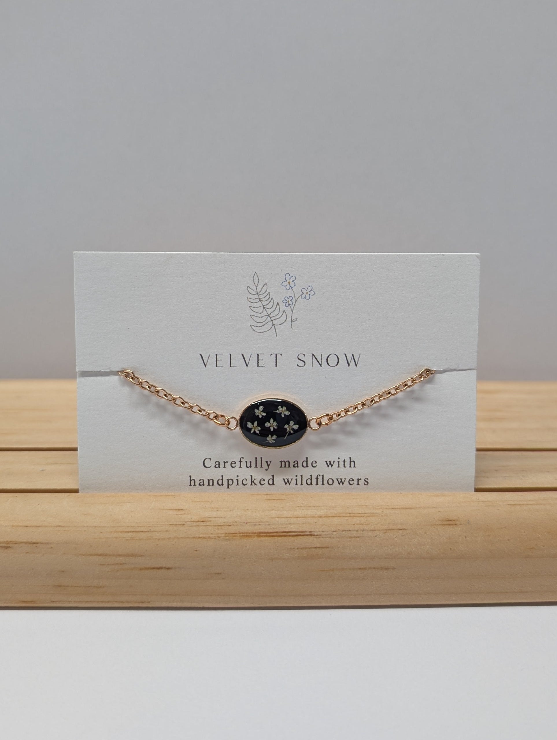 Bracelet | Queen Anne’s Lace on black | Oval | Rose Toned Stainless Steel