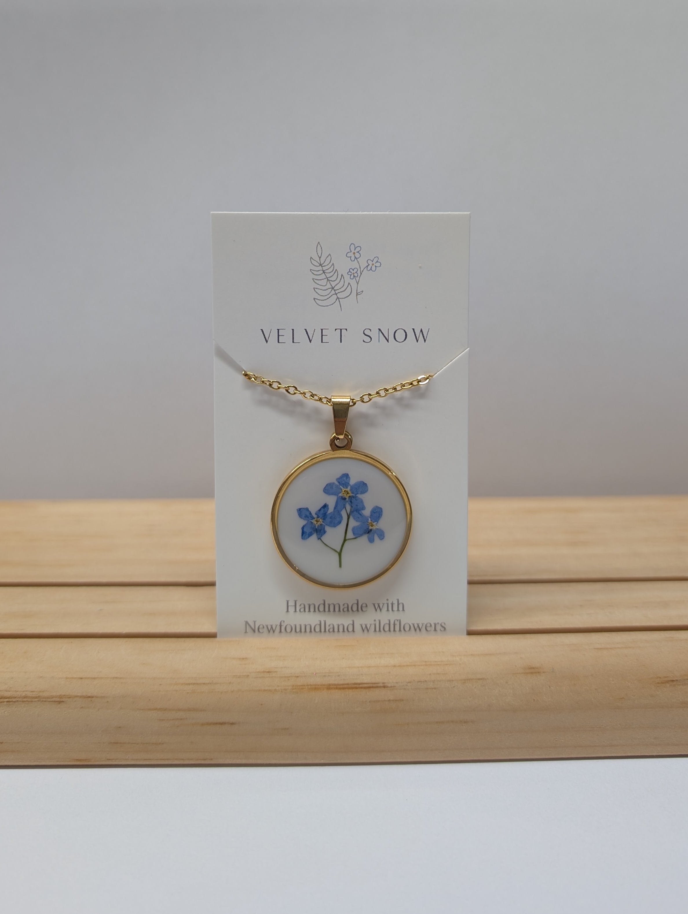 Velvet Snow Accessories is a handcrafted jewelry line based in Newfoundland, Canada. Designer Kim Cleary, born and raised in St. John’s, forages wild flowers and foliage within the province and turns them into beautiful, minimalistic accessories.
