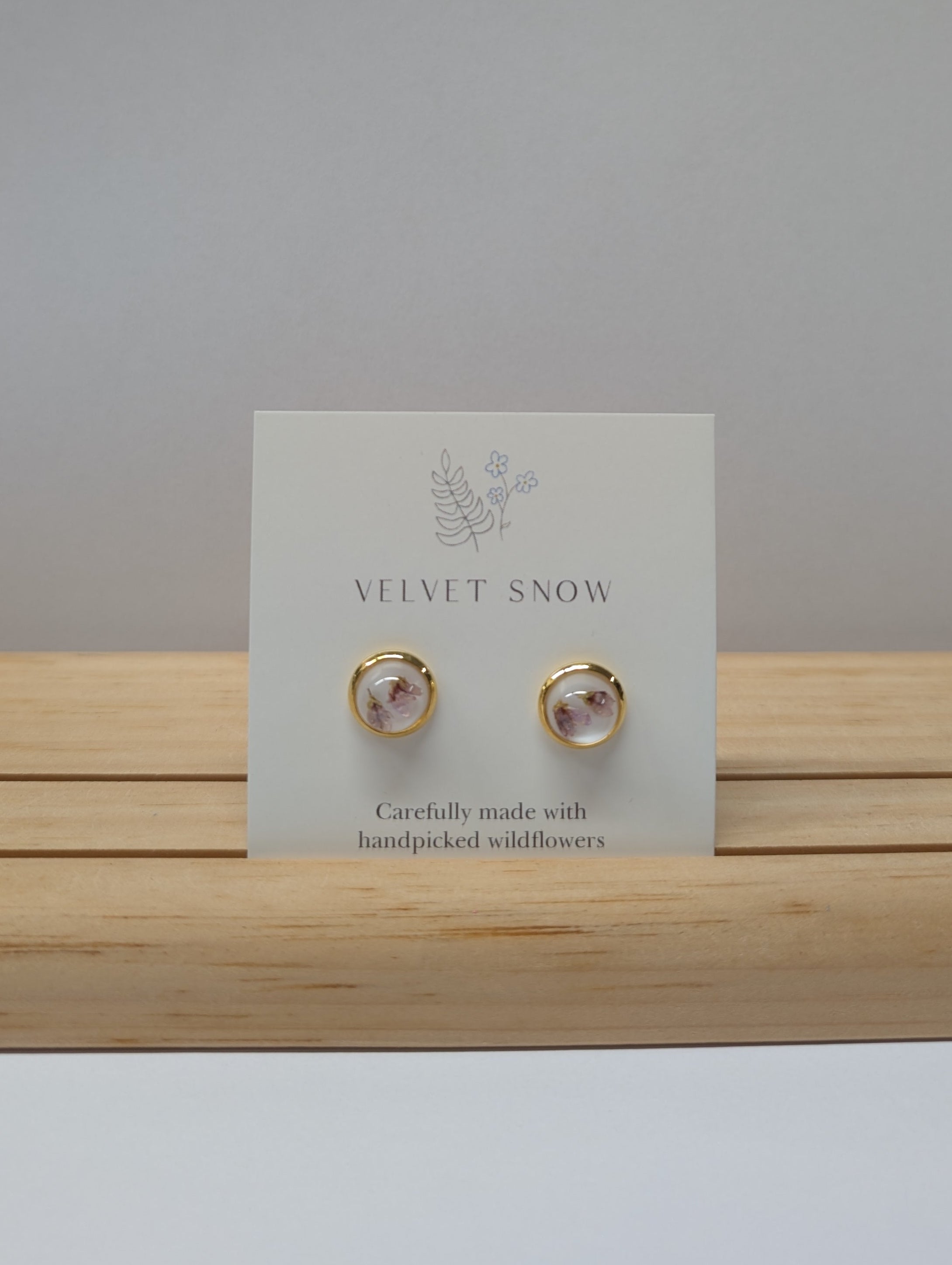 Velvet Snow Accessories is a handcrafted jewelry line based in Newfoundland, Canada. Designer Kim Cleary, born and raised in St. John’s, forages wild flowers and foliage within the province and turns them into beautiful, minimalistic accessories.