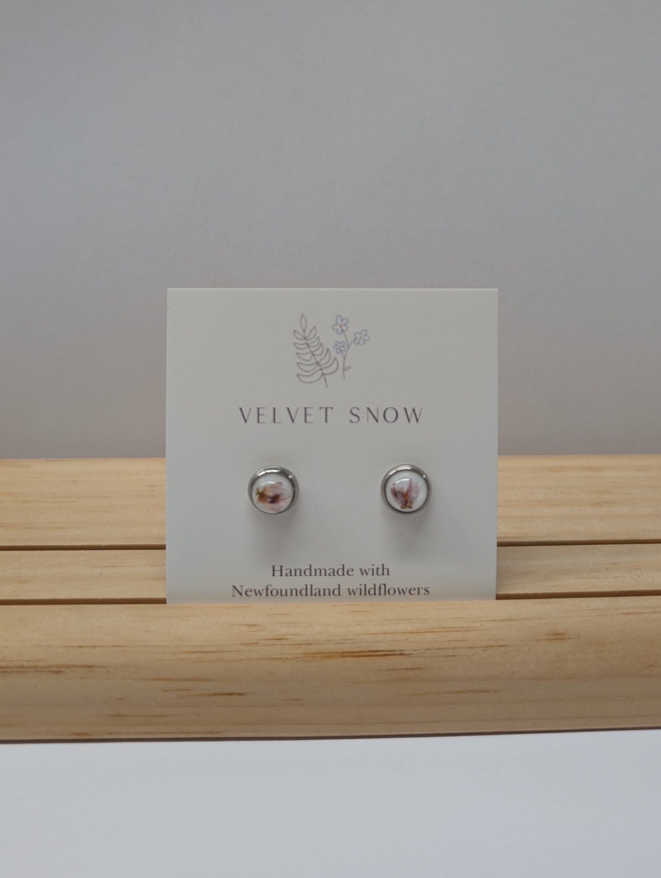 Velvet Snow Accessories is a handcrafted jewelry line based in Newfoundland, Canada. Designer Kim Cleary, born and raised in St. John’s, forages wild flowers and foliage within the province and turns them into beautiful, minimalistic accessories.