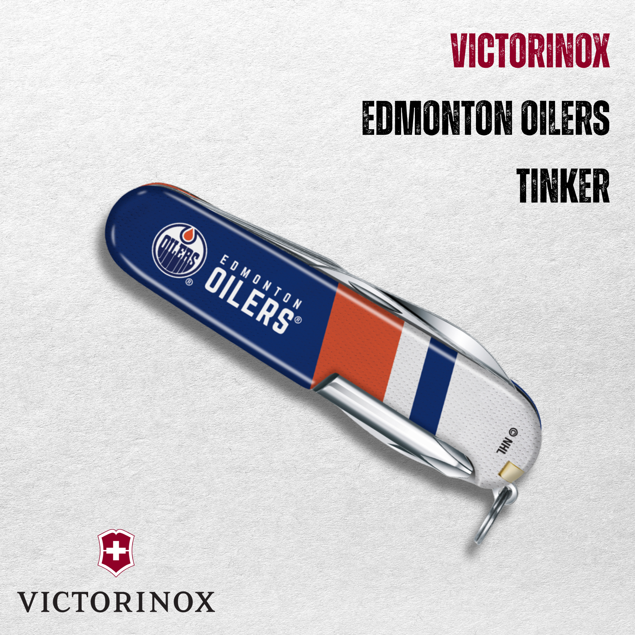 Celebrate your Oilers fandom with this officially licensed Victorinox Tinker knife. Featuring Swiss precision engineering and practical tools—blade, file, screwdriver, and opener—it's built tough for everyday carry and adventure. Compact, reliable, and proudly Edmonton.