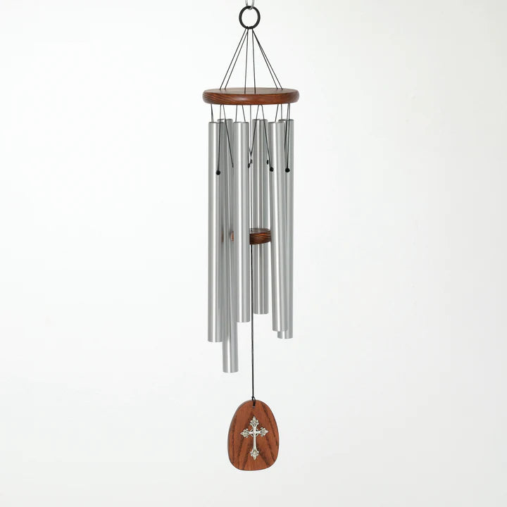 This beautifully tuned wind chime plays the inspiring notes of “Amazing Grace.” Featuring a cross detail, it offers comfort, reflection, and peace through its soft, uplifting sound.