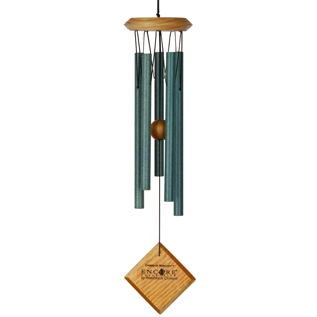Elegantly aged with a verdigris finish, this wind chime features bronze tubes and a removable windcatcher for customization. Its timeless tuning and finish make it a standout in outdoor décor.